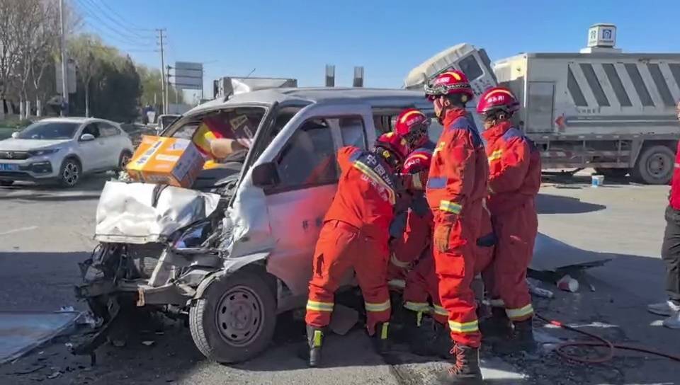 消防员到达现场后经勘察发现,事故为一辆面包剐蹭到前方货车后导致面包车驾驶室变形,驾驶员被困车内,无法脱困,消防救援人员根据现场情况立即实施救援,利用扩张钳对车辆驾驶门进行扩张,经过一番紧张的救援,成功将被困人员救出,并移交现场120医护人员送往医院进行救治。